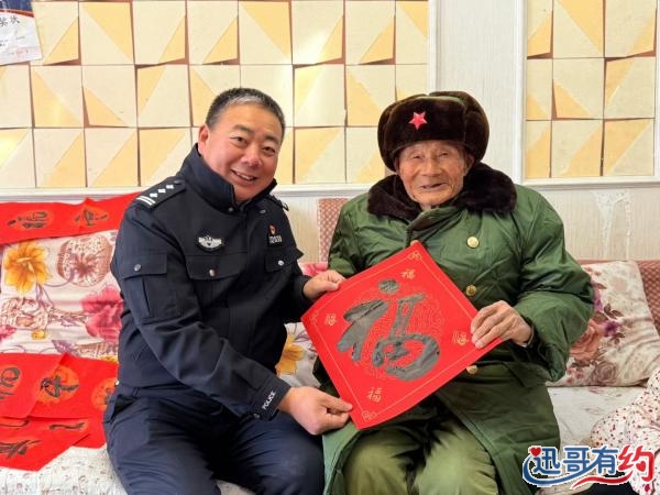 口口在99岁周兆胜老军人家中,志愿者们带来了精心准备的年货:高档洗脚木浴桶、优质大米、牛奶、芝麻糊、坚果、水果等多种年货物资,让周老一大家子亲人都十分感动。这次关爱33名老兵的爱心物资总价值达2万元,均有迅哥有约团队的爱心人士捐资购买。这些物资中,最特别的是那些手写的春联。中国书法家协会会员张用惠已经连续五年为全区军属家庭义务书写春联,这次他专门随团队上门,为老退伍军人书写了一百多副春联。“我也是名退伍军人,能为老前辈们做点事,心里特别踏实。”张用惠一边挥毫泼墨,一边说道。红纸黑字间,流淌着对老兵的敬意与祝福。这场慰问活动背后,是一个多元参与的爱心接力。爱心企业家董江山与妻子共同出资近万元购买物资,并亲自驾车送到每一位老兵家中。“没有这些老英雄当年的付出,哪有我们今天的幸福生活。”作为协会副会长的董江山朴素的话语道出了所有志愿者的心声。
