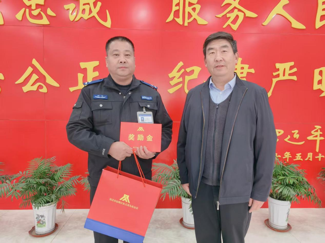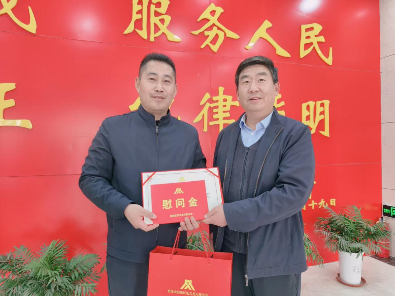 为进一步弘扬社会正气,大力倡导见义勇为精神,做好对见义勇为人员关心关爱工作,11月4日下午,宿豫区见义勇为基金会副秘书长张鑫益到辖区电子商务产业园派出所对见义勇为人员吴长虹和社会治安维稳做出贡献的沈红启进行送奖上门。