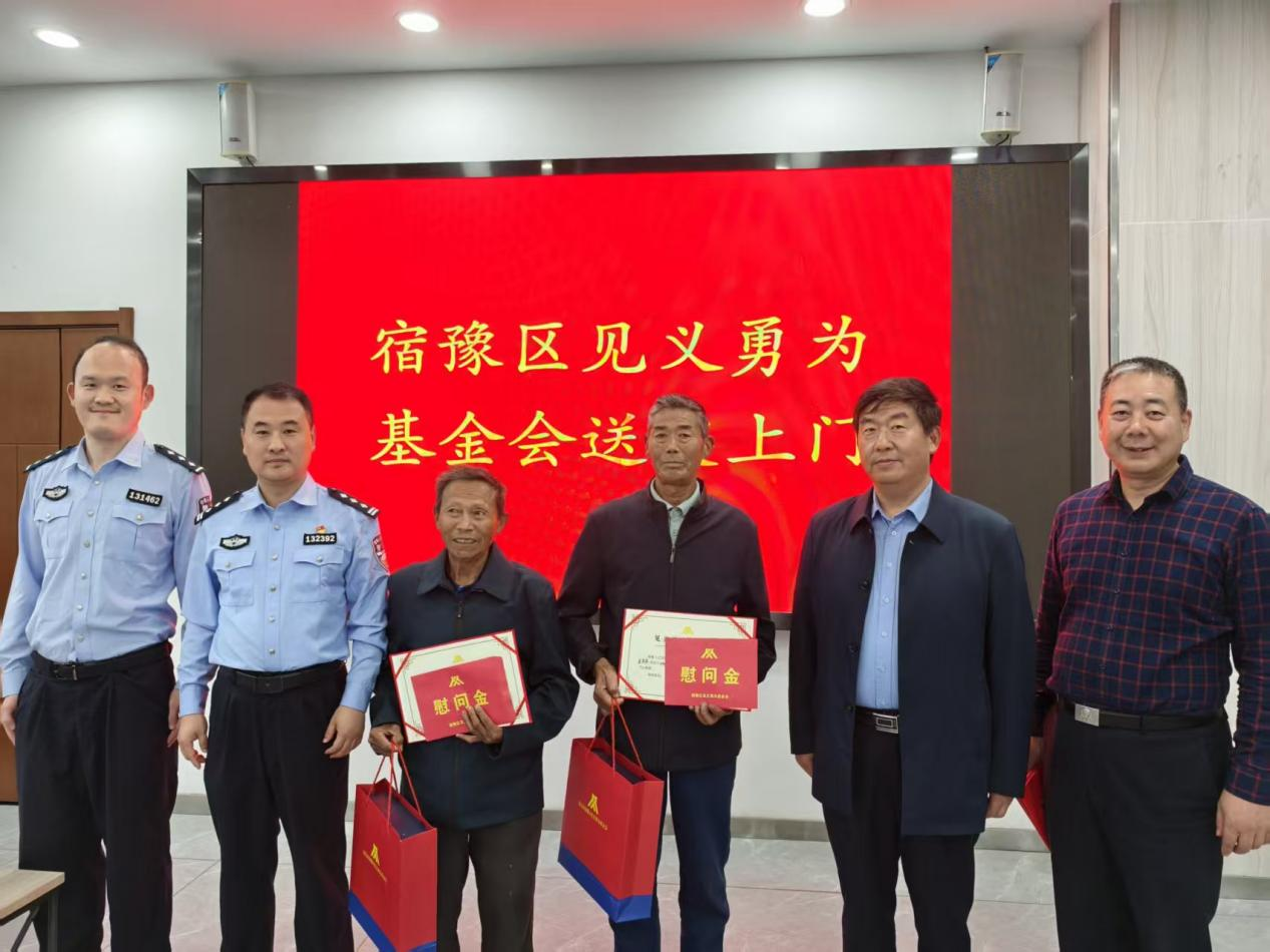 送奖时,宿豫区见义勇为基金会秘书长张鑫益对关庙3位见义勇为人员不顾个人安危、用生命托举生命的义举表示敬佩,赞誉他用行动诠释担当,对来龙4位帮助他人反诈,守住群众的钱袋子的精神进行称赞,估计大家将把这份荣誉化作动力。(作者:陈逸君 审核:陆迅)